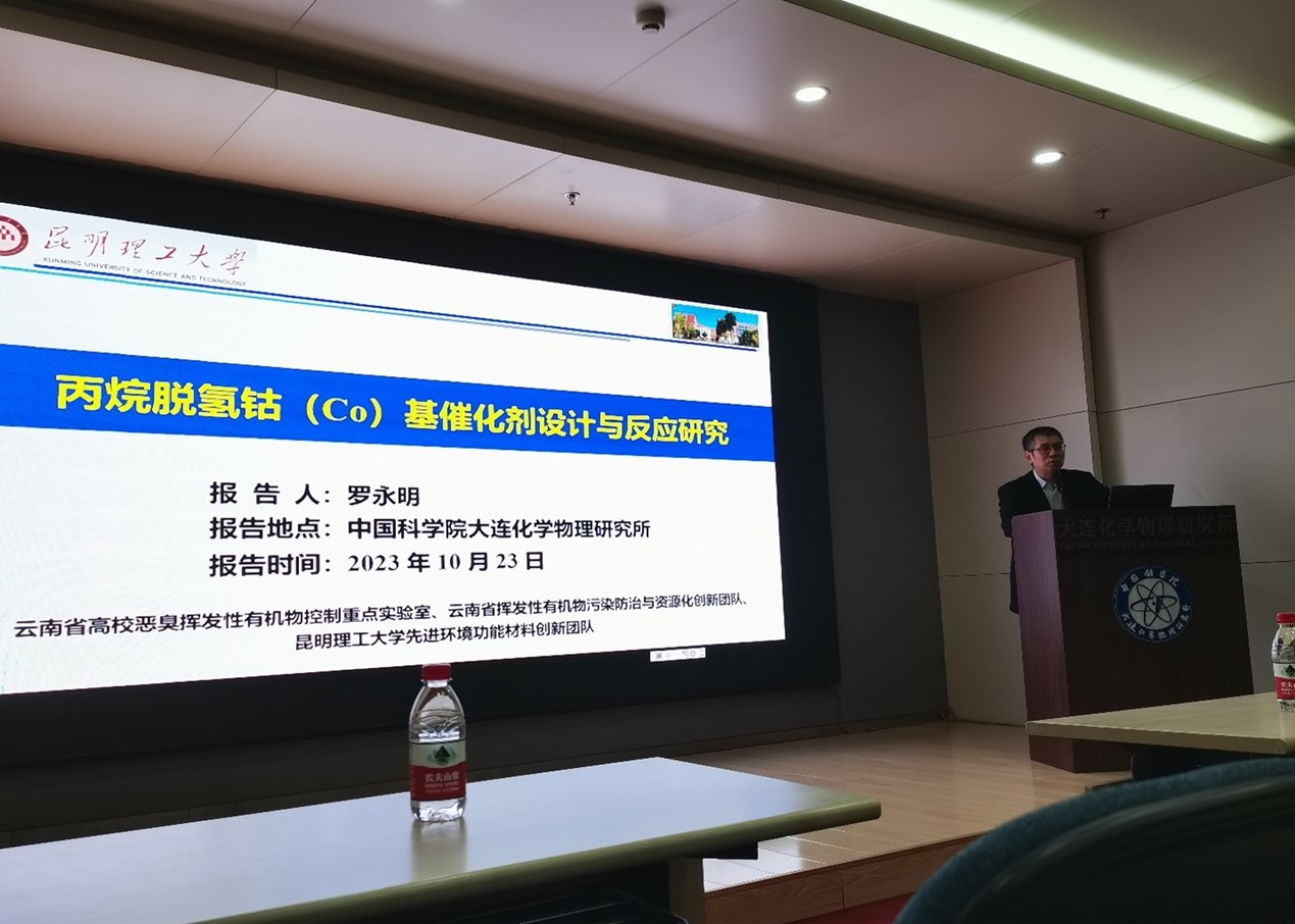 会议期间,受中国科学院大连化学物理研究所朱向学研究组邀请,罗永明院长一行3人访问了中国科学院大连化学物理研究所,做了题为《丙烷脱氢(Co)基催化剂设计与反应研究》的专题报告,并对色漫