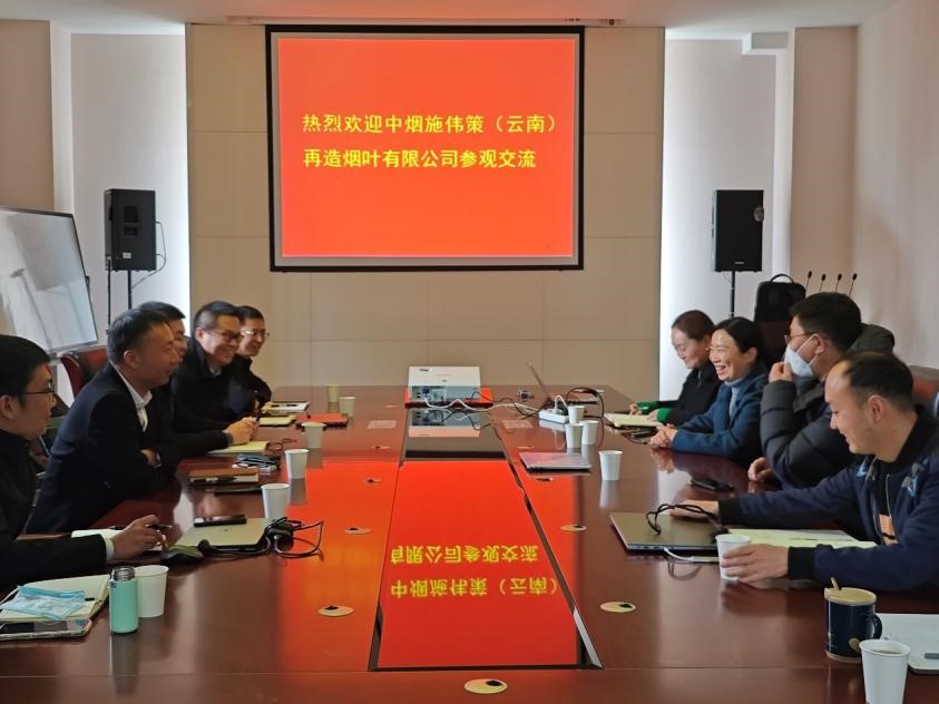 2023年11月30日上午,中烟施伟策(云南)再造烟叶有限公司到我院进行调研交流,座谈会在化工楼030会议室举行。中烟施伟策(云南)再造烟叶有限公司副总经理李雄刚,生产副部长钟翊钊,人力资源部部长陶学伟等一行6人,我院党委书记李云燕、党委副书记宁玲、刘玉新教授等开展交流。绿色造纸与纤维基功能材料研究团队全体师生参加了交流会。