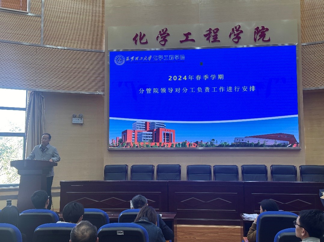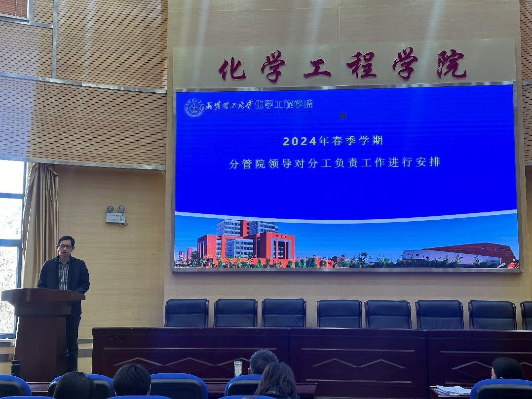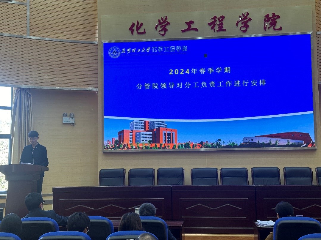 在化工楼100报告厅召开2024年春季学期全院大会,学习唐家华书记、王华校长在2024年春季开学中层干部会议上的讲话,研究部署新学期重点工作。本次会议由党委书记李云燕主持,化工学院班子成员和全体教职工参会。