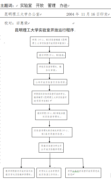 第十五条 每学期结束前一周,各学院将本学院实验室开放完成项目书面总结及学生成绩的相关情况报实验室管理处实验教学管理科。