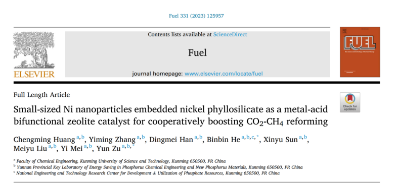 上述研究成果以《Small-sized Ni nanoparticlesembedded nickel phyllosilicate as a metal-acid bifunctional zeolite catalyst for cooperatively boosting CO2-CH4 reforming》为题发表在能源领域TOP学术期刊《Fuel》上。同时,该论文入选2023年度ESI高被引论文。色漫