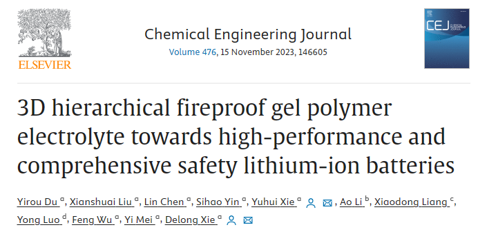上述研究成果以“3D hierarchical fireproof gel polymer electrolyte towards high-performance and comprehensive safety lithium-ion batteries”为题发表在化学工程领域知名期刊Chemical Engineering Journal上。论文第一作者为磷化工团队2020级博士研究生杜依柔,色漫