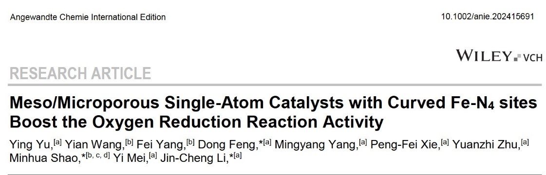 冯东博士、李金成副教授与香港科技大学邵敏华教授合作,在化学顶级期刊Angewandte Chemie International Edition上发表了题为“Meso/MicroporousSingle-AtomCatalystswithCurvedFe-N4sitesBoosttheOxygenReductionReactionActivity”的研究论文。